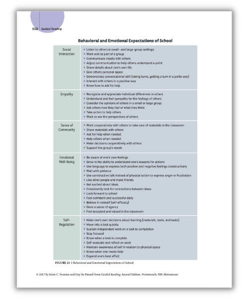 Page 502 of Guided Reading, "Behavioral and Emotional Expectations of School."